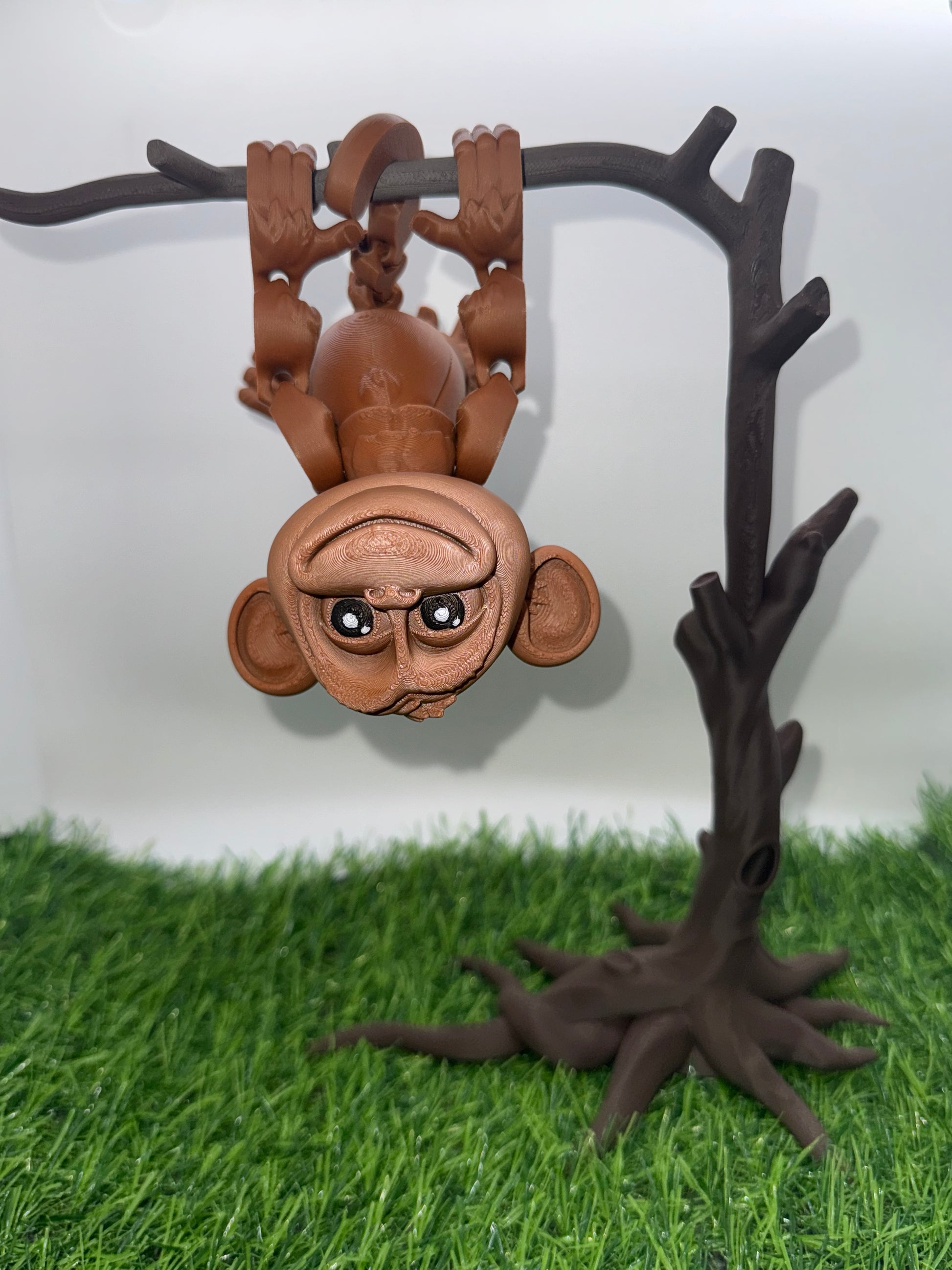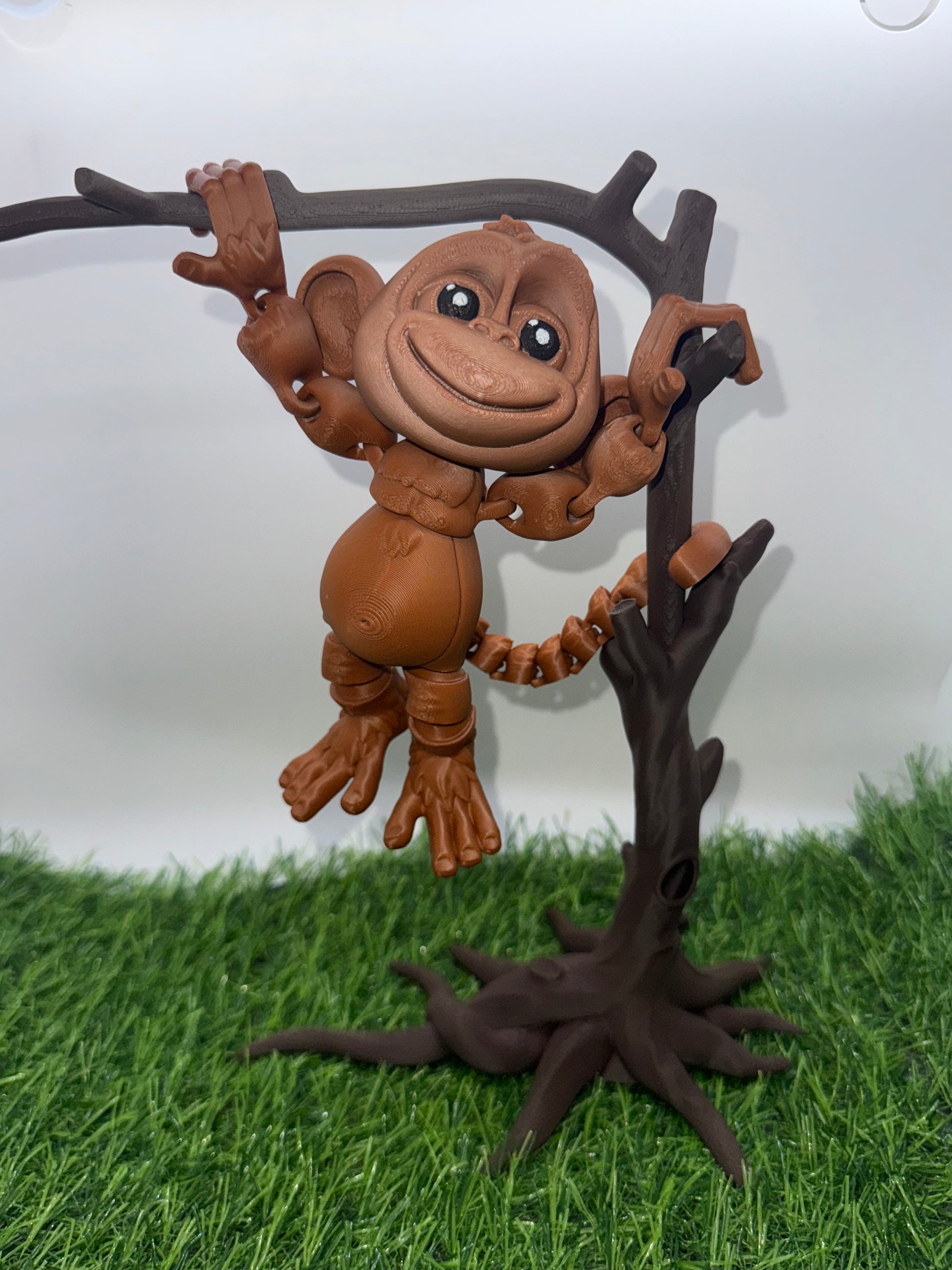 3D printed monkey is a fully articulated with movable limbs, perfect for hanging, posing, or displaying. Designed with a laid-back expression and classic monkey pose, it makes a standout piece for desks, shelves, or anywhere that needs a bit of a cheeky charm.