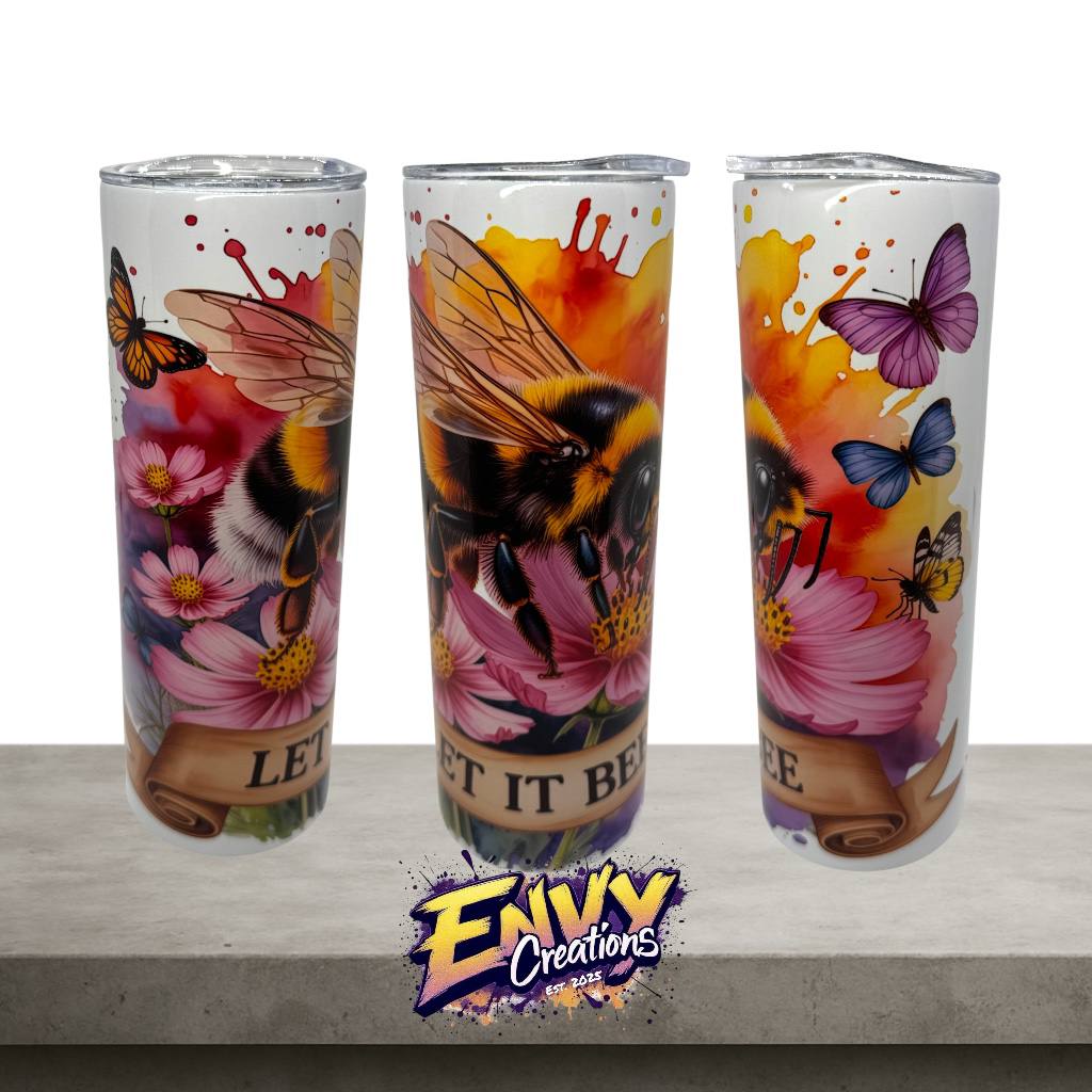 Let It Bee – Floral Bumblebee & Butterfly Design – 20oz Stainless Steel Tumbler